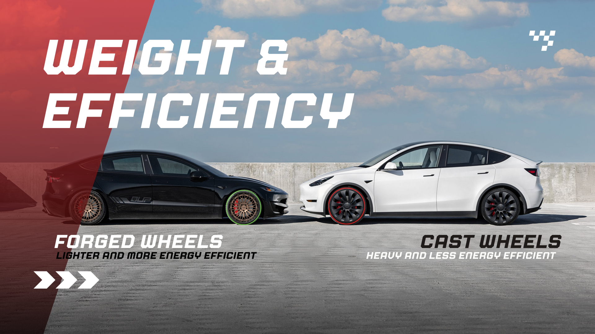Forged wheels are the lightest and strongest options available, contributing to reduced vehicle weight and enhanced energy efficiency. Replacing alloy wheels with forged ones can decrease each wheel's weight by 2–4 kg, depending on the size, potentially increasing the range by 10–20%.